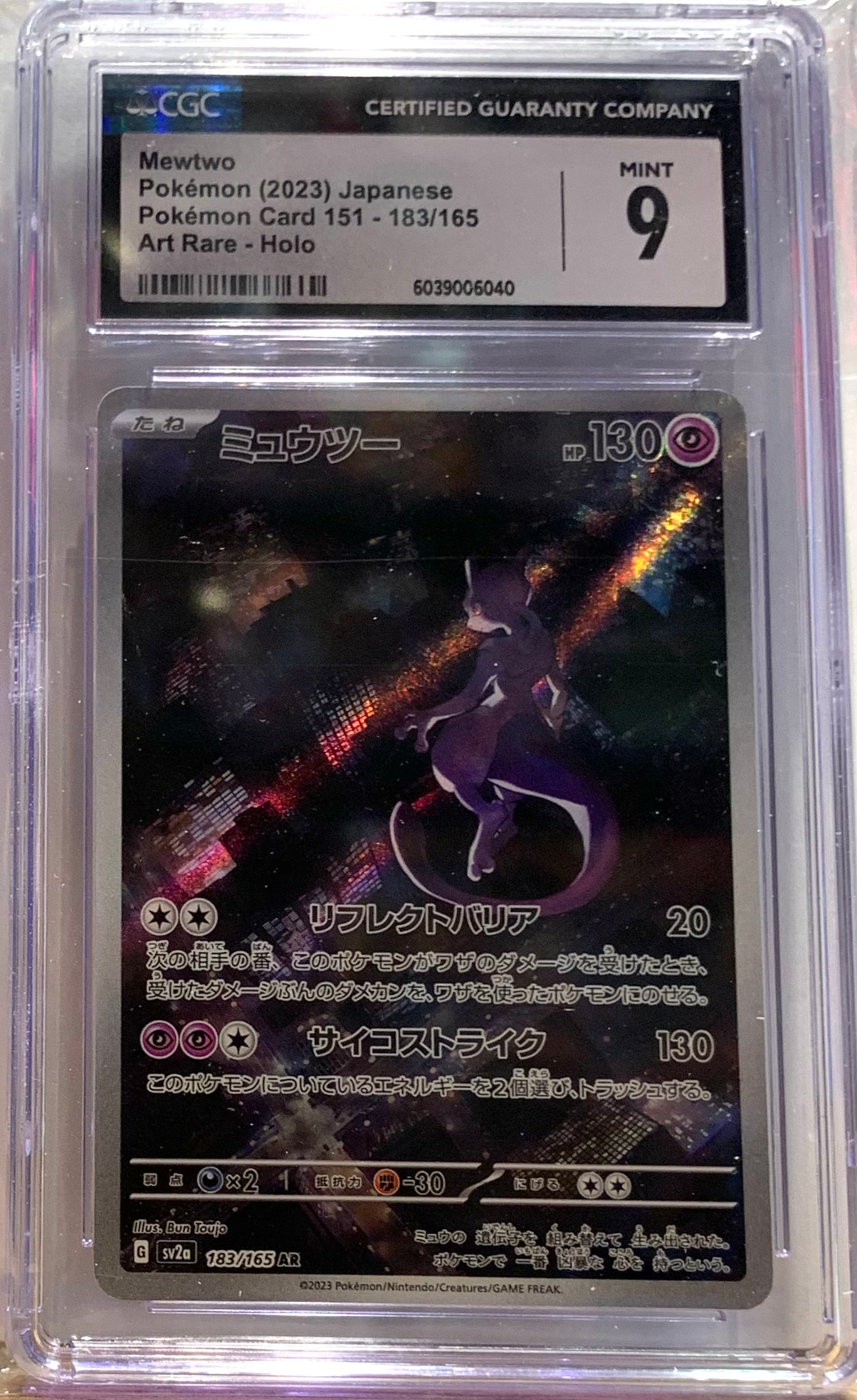 Sichere Dir Mewtwo aus der Pokémon-Kartenserie, bewertet mit der hohen Note GCG 9. Eine wahre Rarität für Sammler und Investoren.