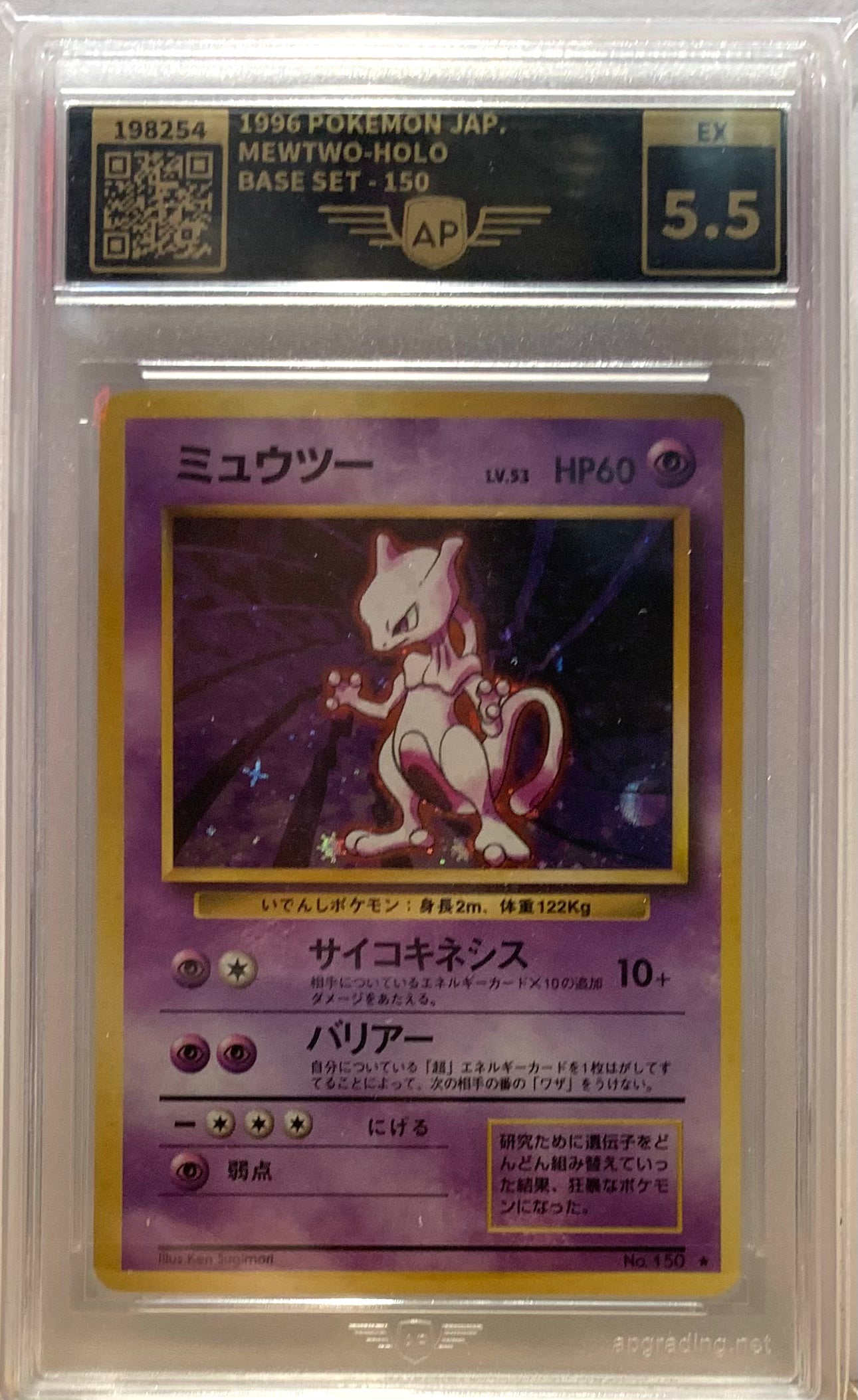 Sichere Dir Mewtwo-Holo #150 Base Set aus der Pokemon-Kartenserie, bewertet mit der Note AP 5.5. Eine wahre Rarität für Sammler und Investoren.
