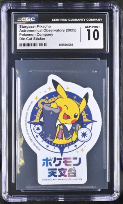 Dieser Stargazer Pikachu Die-Cut Sticker aus dem Jahr 2025 ist ein besonderes Sammlerstück für Pokémon-Fans. Der Sticker wurde von CGC mit der Höchstbewertung 10 zertifiziert und befindet sich damit in einem makellosen Zustand. Das spezielle Die-Cut-Format verleiht dem Motiv eine hochwertige und auffällige Optik.