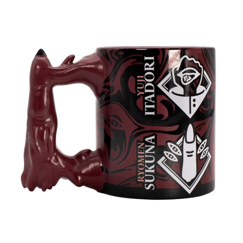 Diese auffällige Jujutsu Kaisen-Tasse mit dem Motiv „Sukuna’s Finger“ bringt den düsteren Flair des Anime direkt in deinen Alltag – perfekt für Kaffee, Tee oder als Sammlerstück.
