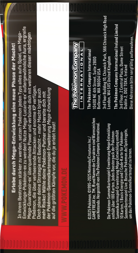 Besonderheiten: Enthält 1–2 Karten der Seltenheit Rare oder höher, kann exklusive Mega Evolution-Karten und Full-Art-Versionen enthalten